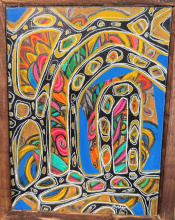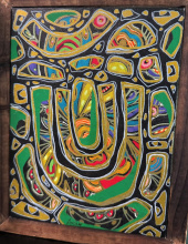 This body of work “Second Vessel" is a marriage of repurposed materials matched with traditional paint on canvas. The abstract shapes are intended to convey a sense of playfulness and harmony between color and materials. The recurring shapes speak a language of luck, growth, fertility, openness, with the main purpose of letting the viewer see and feel... [ more ]