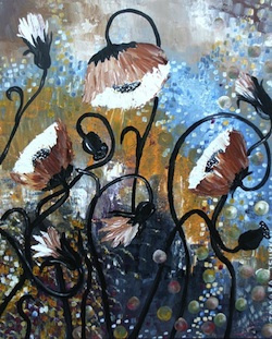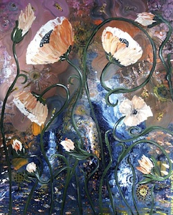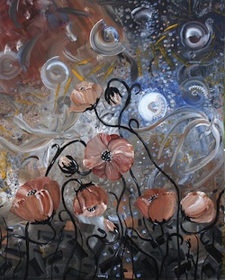I've tried several different styles and techniques, and currently mainly work in two rather unrelated styles , contemporary and folk art. These paintings often have a bit of mystical feel to them.