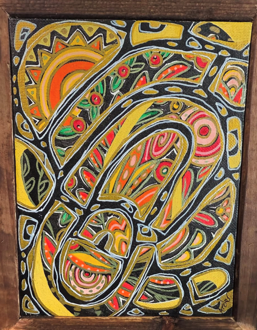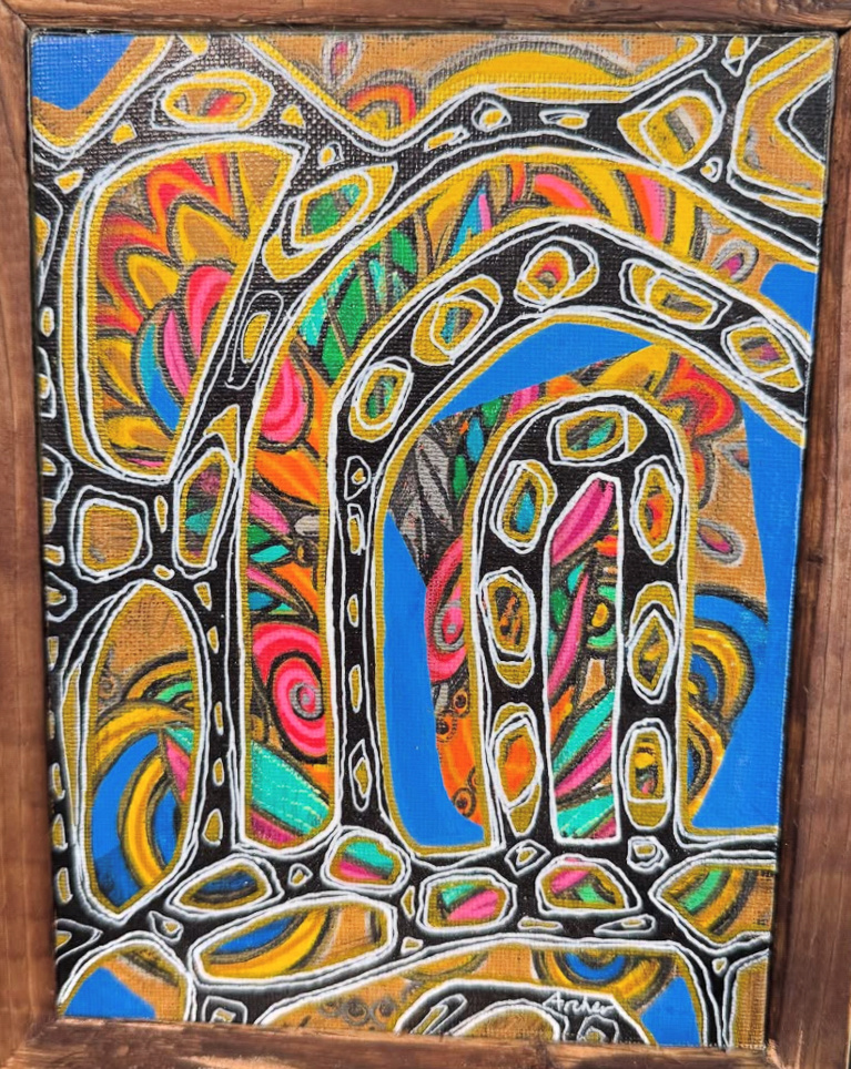 This body of work “Second Vessel" is a marriage of repurposed materials matched with traditional paint on canvas. The abstract shapes are intended to convey a sense of playfulness and harmony between color and materials. The recurring shapes speak a language of luck, growth, fertility, openness, with the main purpose of letting the viewer see and feel whatever they align with when looking at the artwork Archer has released from her mind and heart into the canvas.